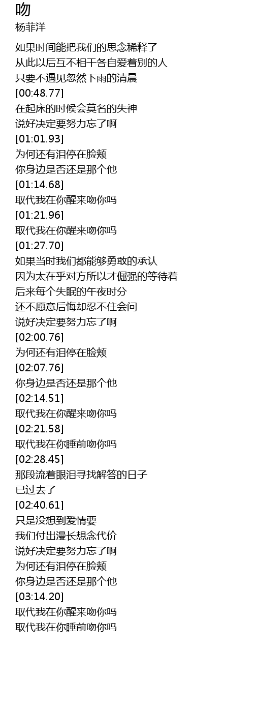 | [03:14.96] | 取代我在你醒来吻你吗 |