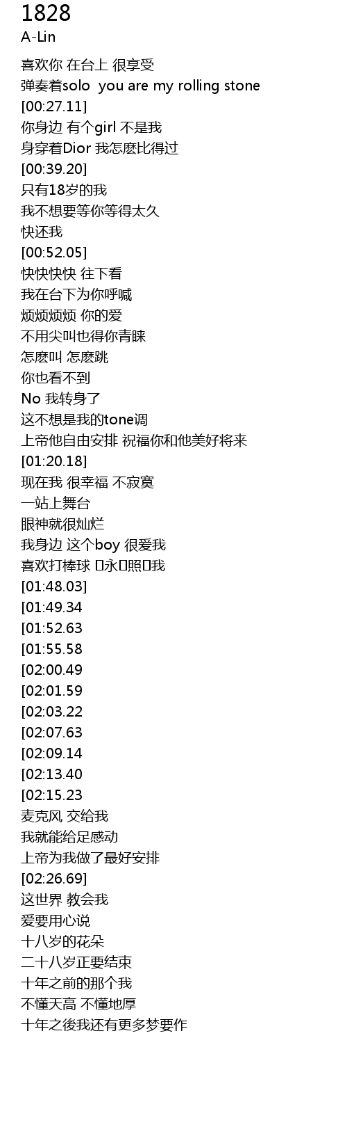 | [02:51.35][01:49.34] | 已28岁的我 |