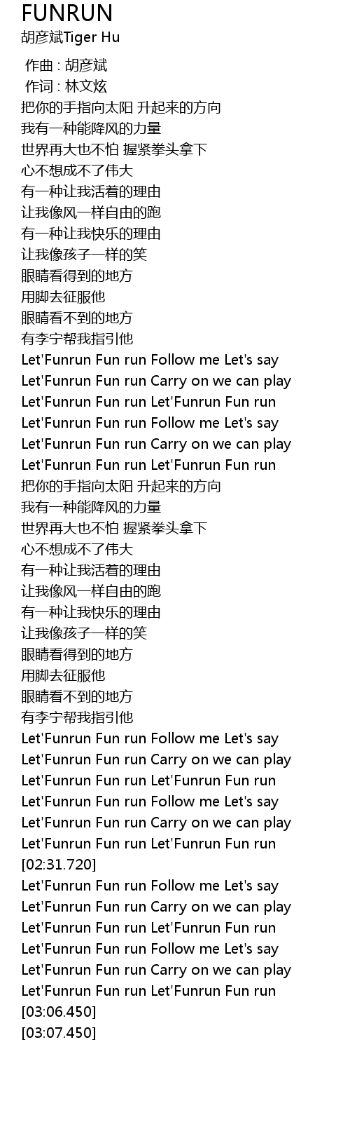 | [02:57.460] | Let'Funrun Fun run Let'Funrun Fun run |