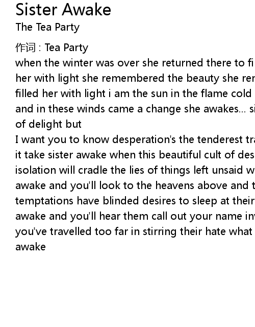 | I want you to know desperation' s the tenderest trap so gently you go what will it take sister awake when this beautiful cult of desire has left you for dead isolation will cradle the lies of things left unsaid what will it take sister awake and you' ll look to the heavens above and taste it' s deceit these temptations have blinded desires to sleep at their feet what will it take sister awake and you' ll hear them call out your name invoking the fates chances are you' ve travelled too far in stirring their hate what will it take sister awake awake |