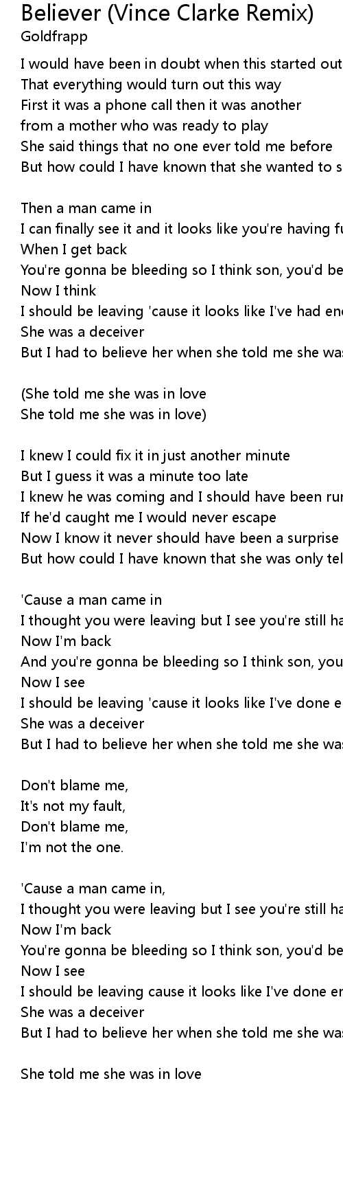 Believer (Vince Clarke Remix) Lyrics