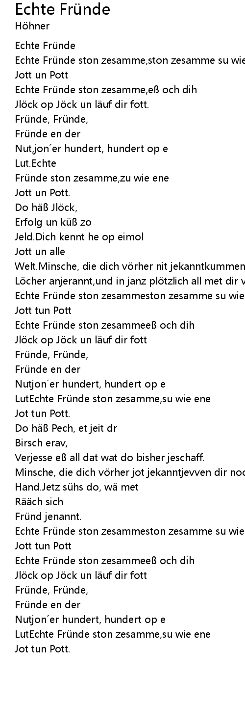 | Minsche, die dich vörher jot jekanntjevven dir noch nit ens mih de | |