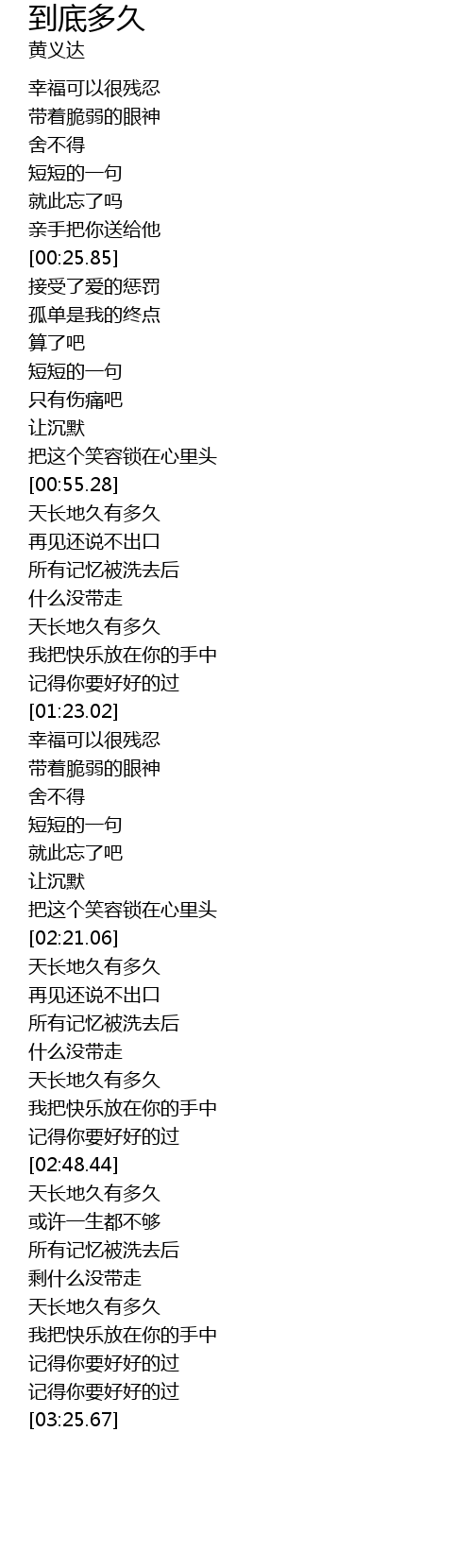 | [03:04.17] | tiān cháng dì jiǔ yǒu duō jiǔ |