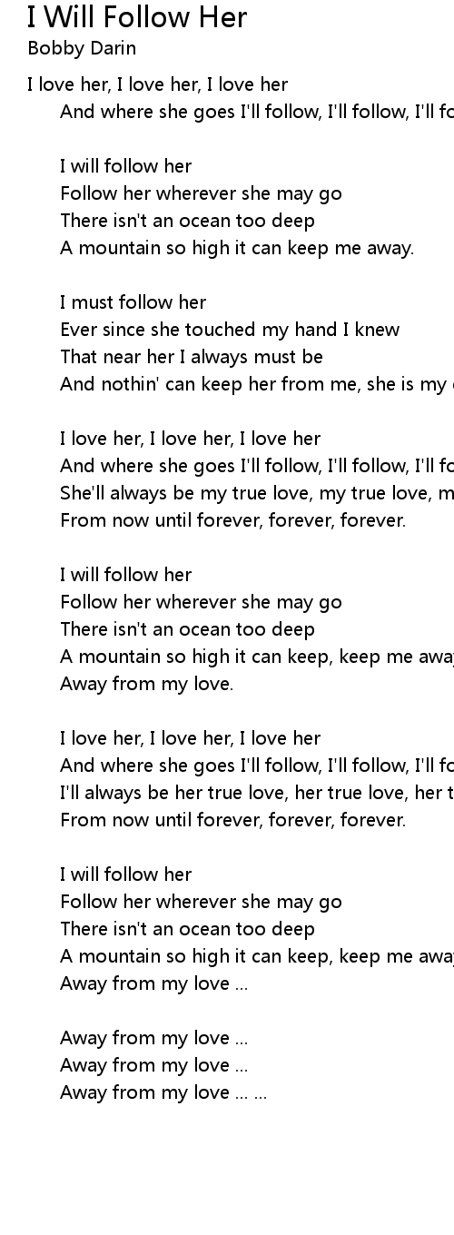 And where she goes I'll follow, I'll follow, I'll follow ... |