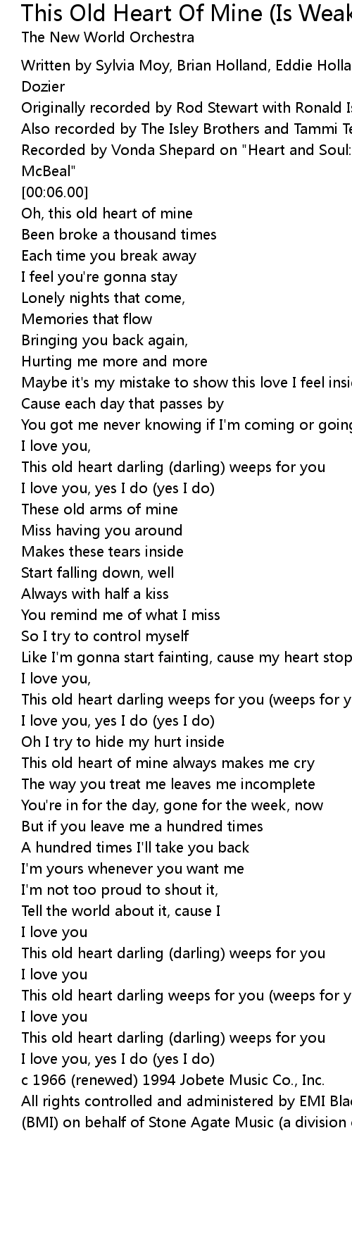 All rights controlled and administered by EMI Blackwood Music Inc. (BMI) on behalf of Stone Agate Music (a division of Jobete Music Co., Inc.) |