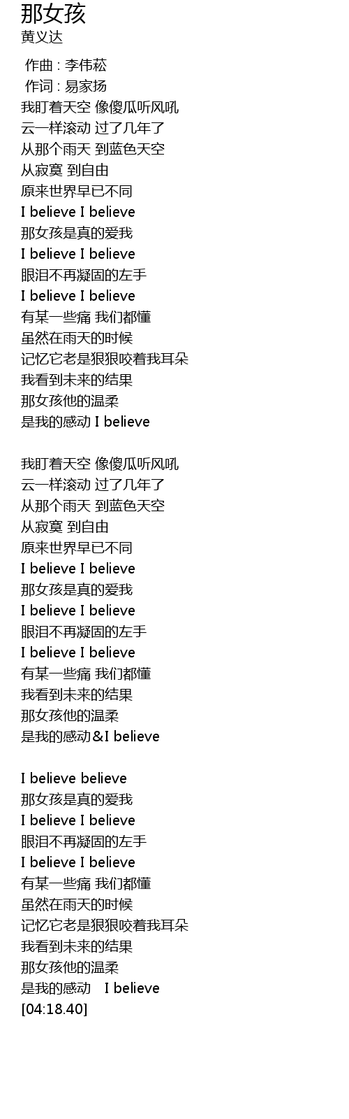 | [03:30.90] | na nv hai shi zhen de ai wo |