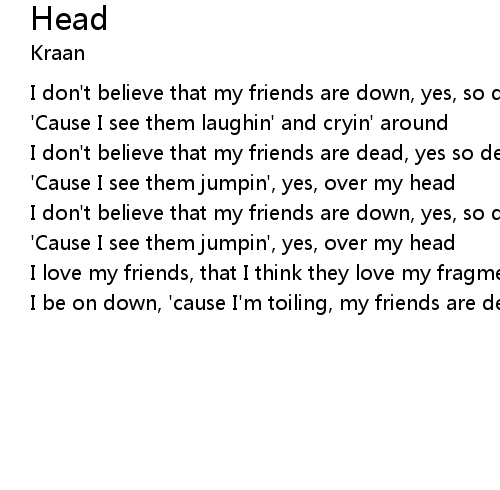 | 'Cause I see them jumpin', yes, over my head | |