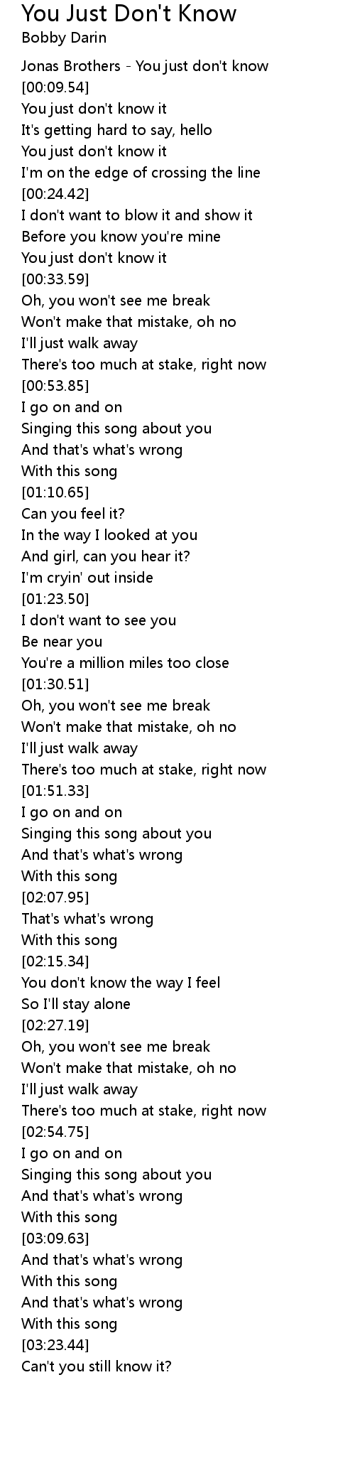 Jonas Brothers - You just don't know |