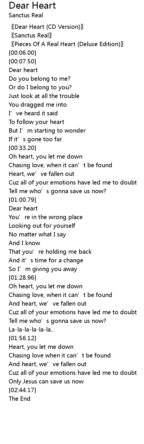 | [00:04.50] | Pieces Of A Real Heart Deluxe Edition |