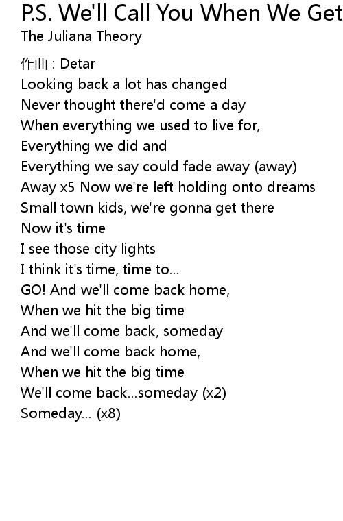 | Song | P.S. We'll Call You When We Get There |