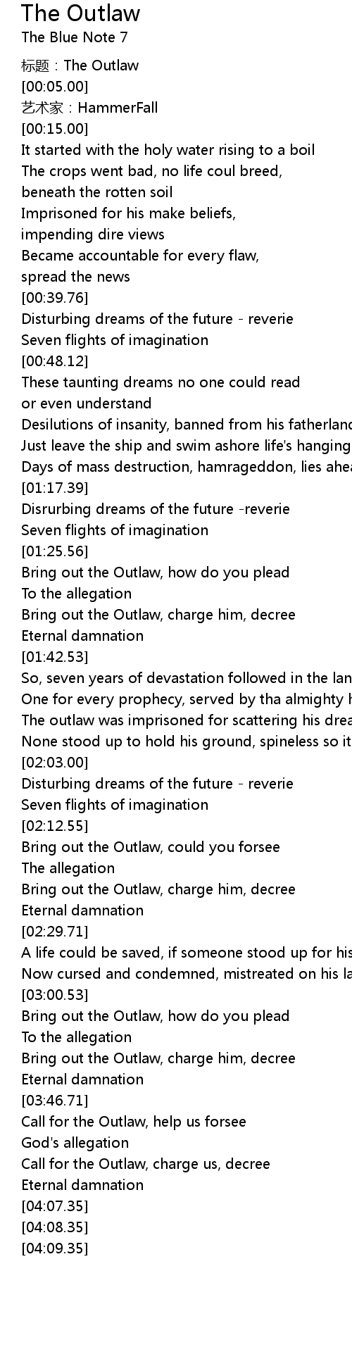 | [02:22.03] | Bring out the Outlaw, charge him, decree |