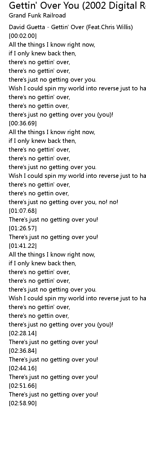 [00:01.00] David Guetta - Gettin' Over (Feat.Chris Willis)