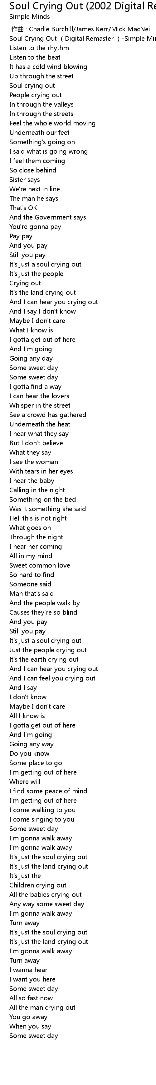 | [00:00.00] | Soul Crying Out Digital Remaster Simple Minds |