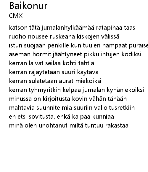 | minussa on kirjoitusta kovin vähän tänään | |