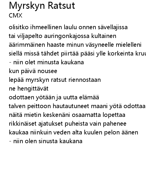 | Song | Myrskyn Ratsut |