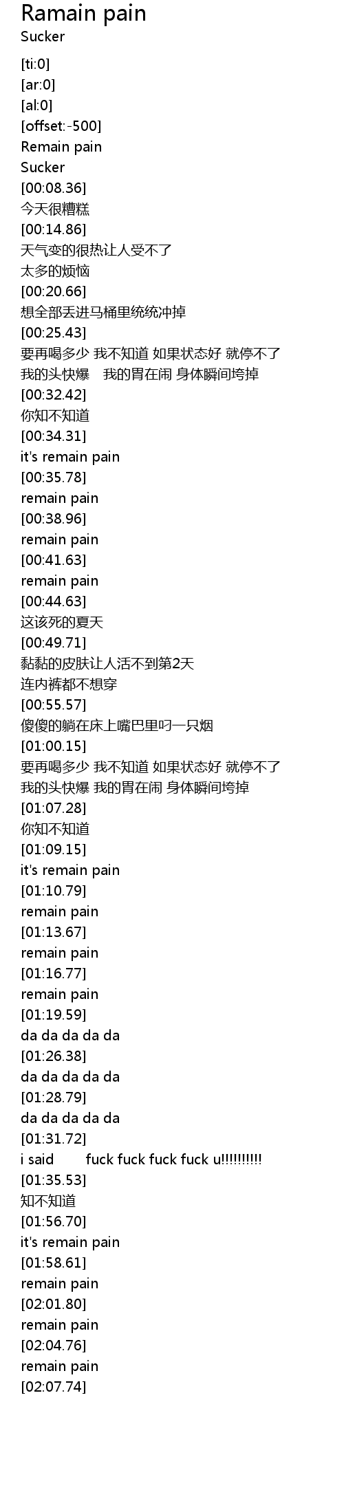 | [00:03.42] | Remain pain |