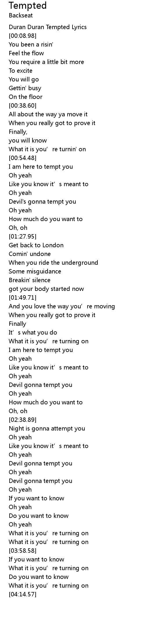 | [00:01.56] | Duran Duran Tempted Lyrics |