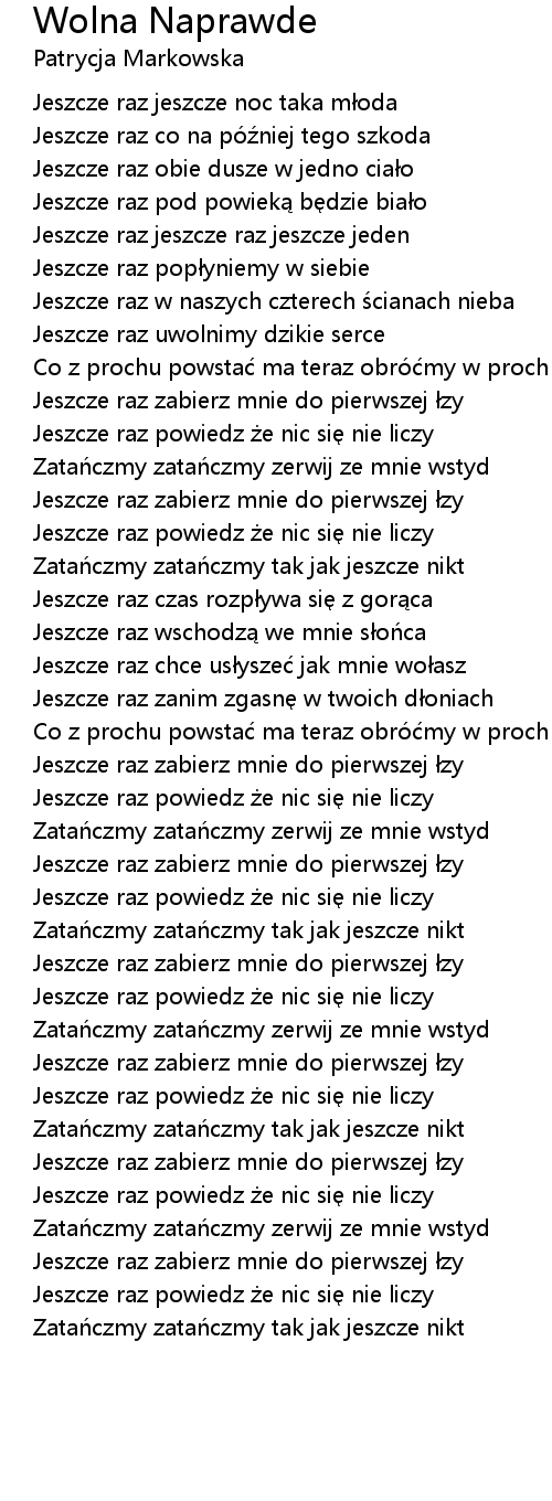 | [00:17.75] | Jeszcze raz pod powiek b dzie bia o |