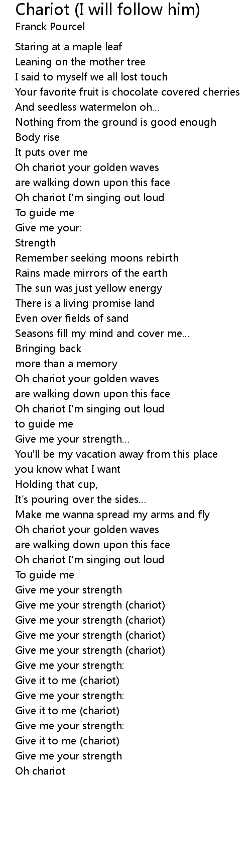 | [00:52.32] | Oh chariot I'm singing out loud |