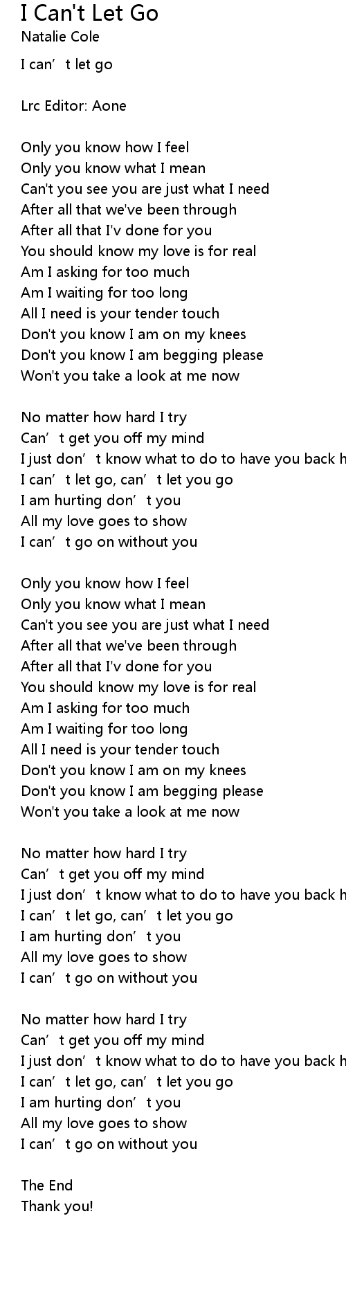 | I can' t let go, can' t let you go | |