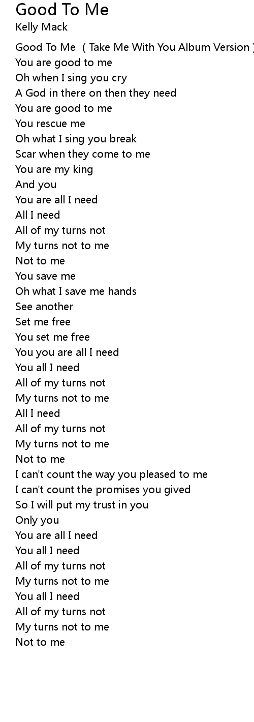 | [00:00.550] | Good To Me Take Me With You Album Version Kelly Mack |