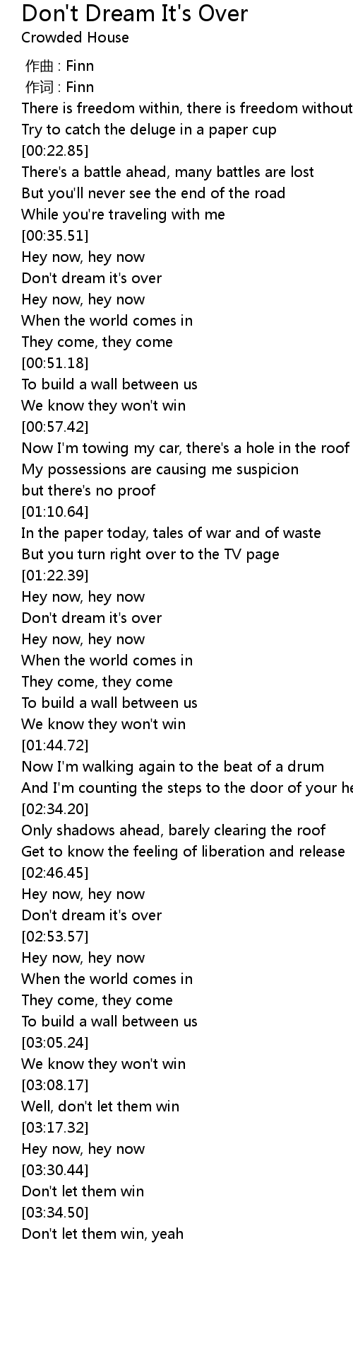 | [02:50.44] | Don't dream it's over |