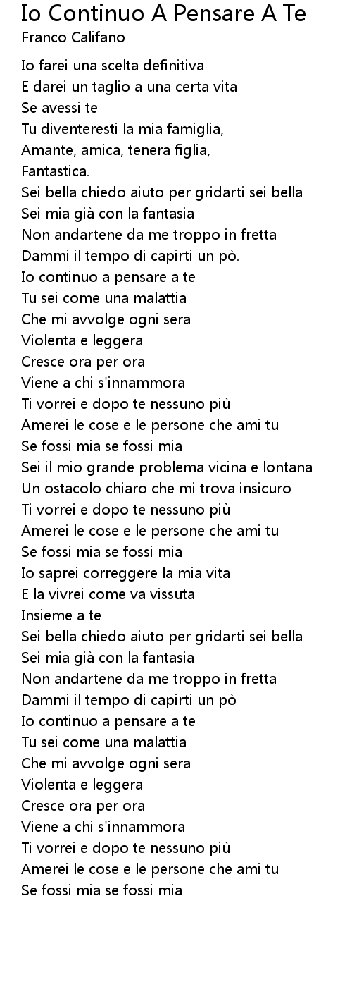 | Song | Io Continuo A Pensare A Te |