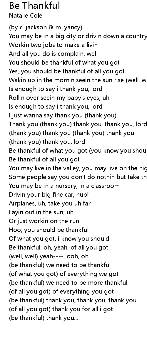 Be thankful, oh, yeah, of all you got |