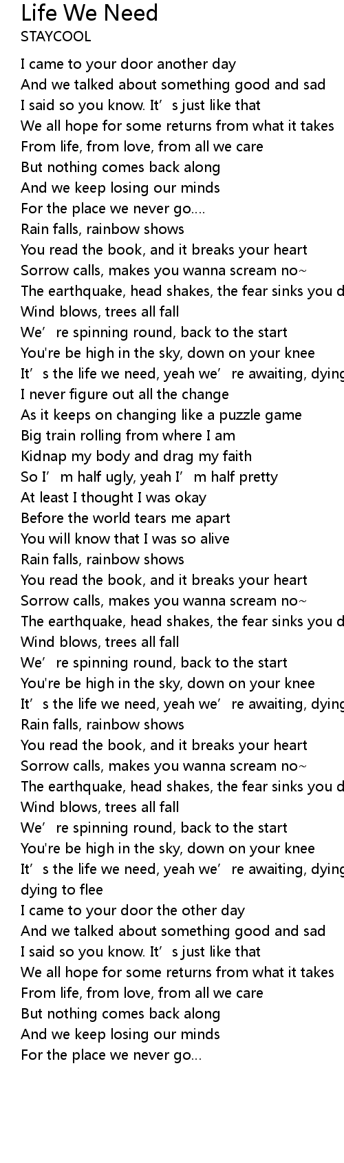 | [02:30.34] | It' s the life we need, yeah we' re awaiting, dying to be |