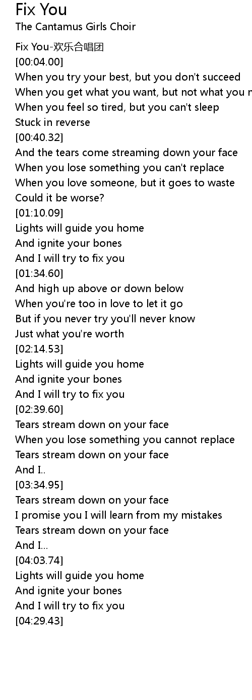 | [00:00.00] | Fix You huān lè hé chàng tuán |