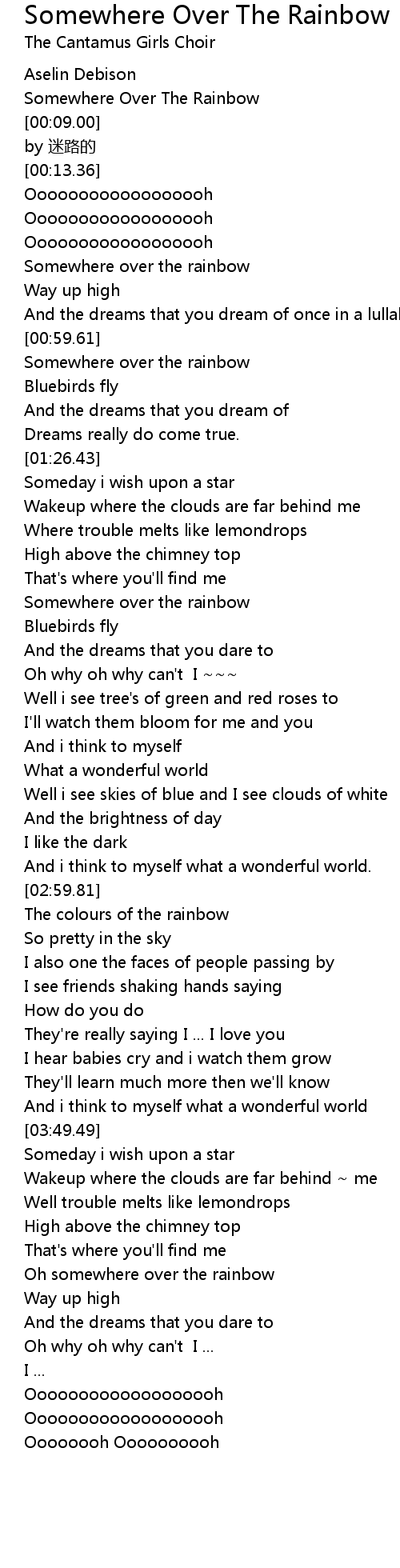 | [01:51.53] | Somewhere over the rainbow |