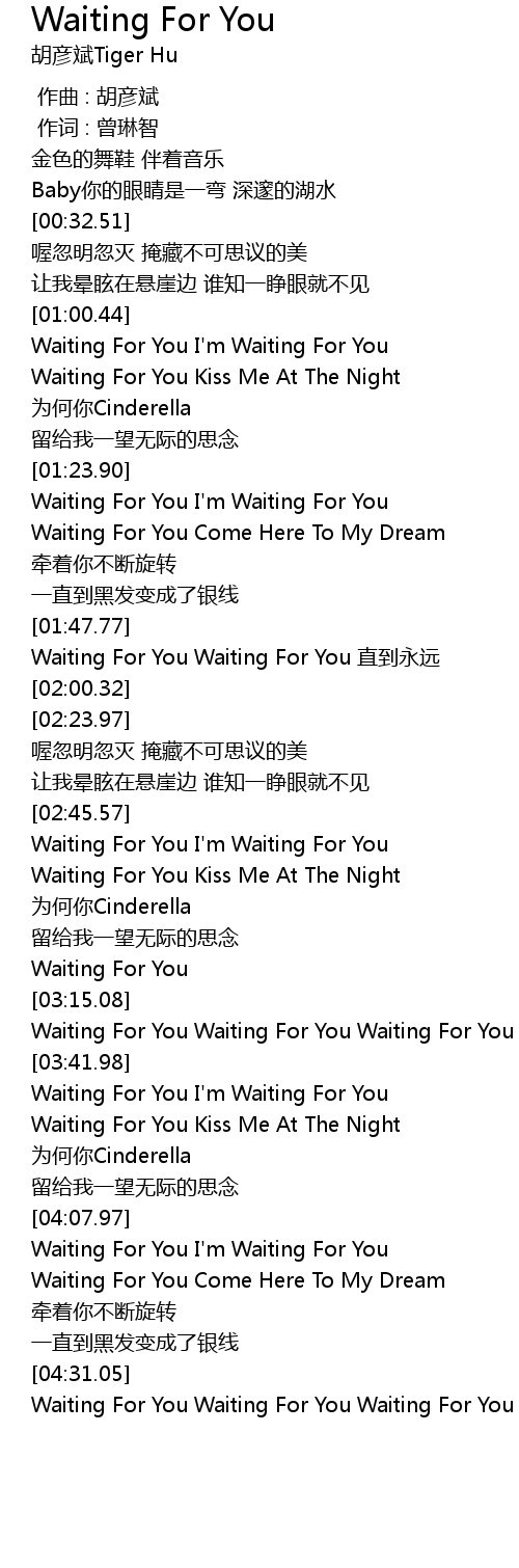 | [04:32.14] | Waiting For You Waiting For You Waiting For You |