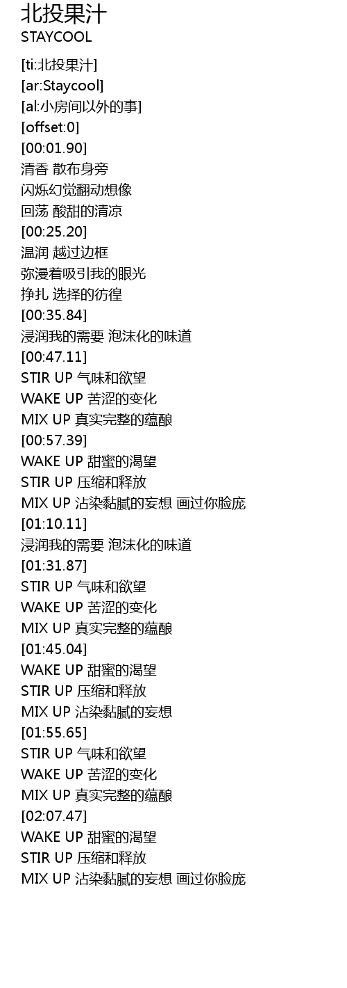 | [01:42.07] | MIX UP 真实完整的蕴酿 |
