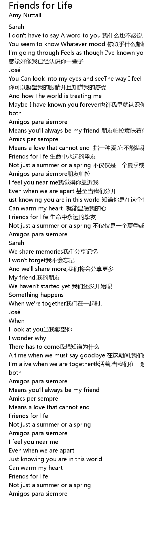 | Friends for life 生命中永远的挚友 | |
