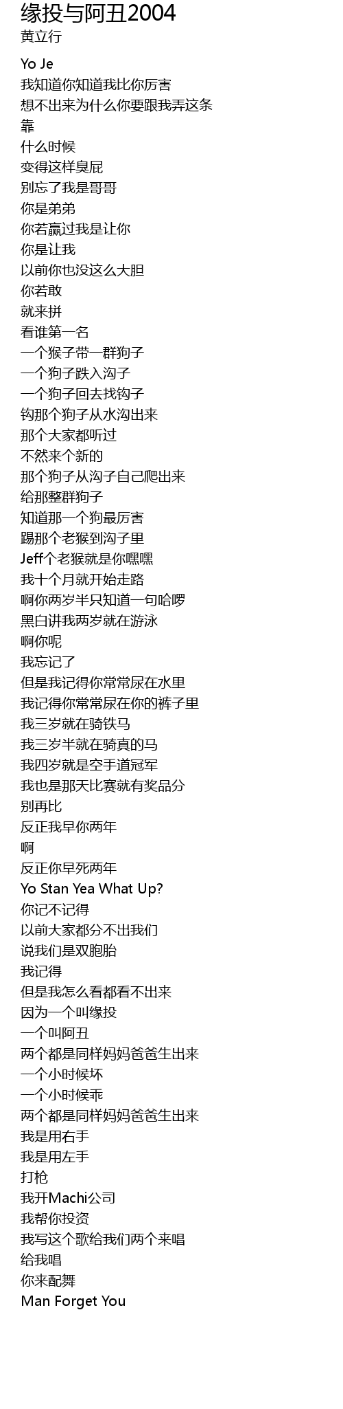 | [03:04.20] | 两个都是同样妈妈爸爸生出来 |