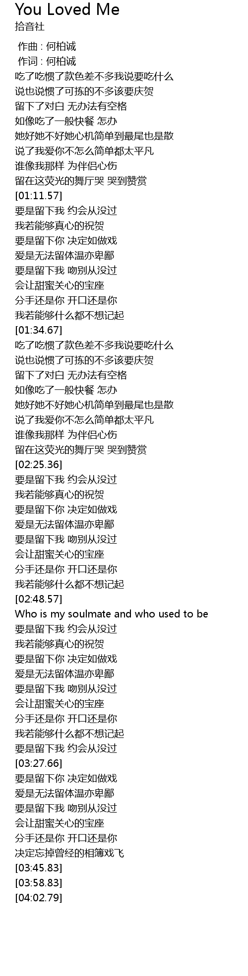 | [03:11.41] | yao shi liu xia ni jue ding ru zuo xi |