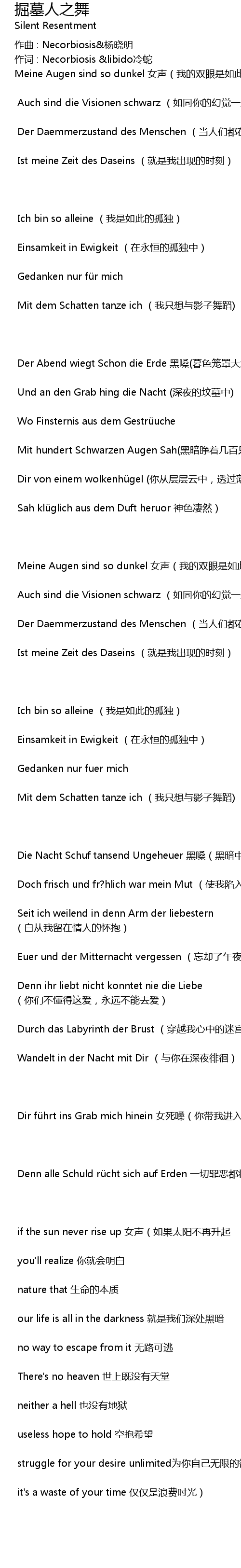 | Dir führt ins Grab mich hinein 女死嗓(你带我进入坟墓 | |
