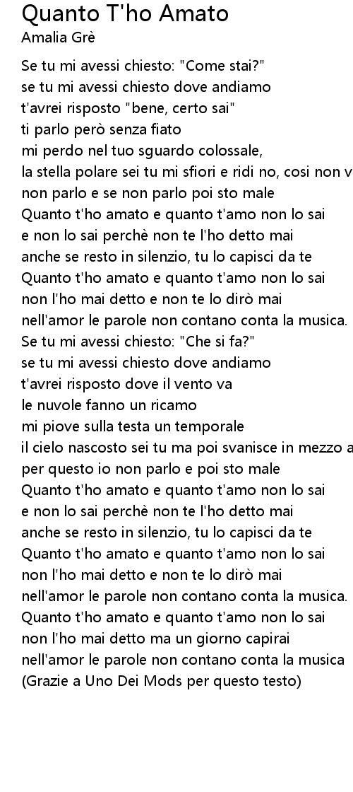 | Quanto t'ho amato e quanto t'amo non lo sai | |