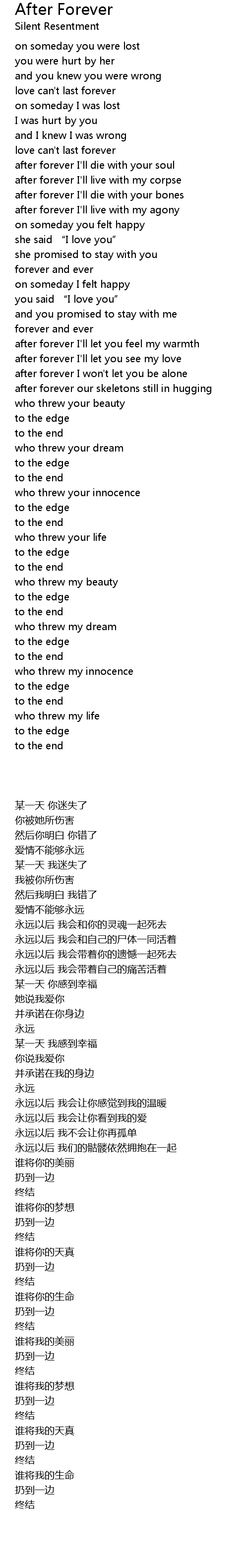 | [02:26.460] | after forever I' ll live with my agony |