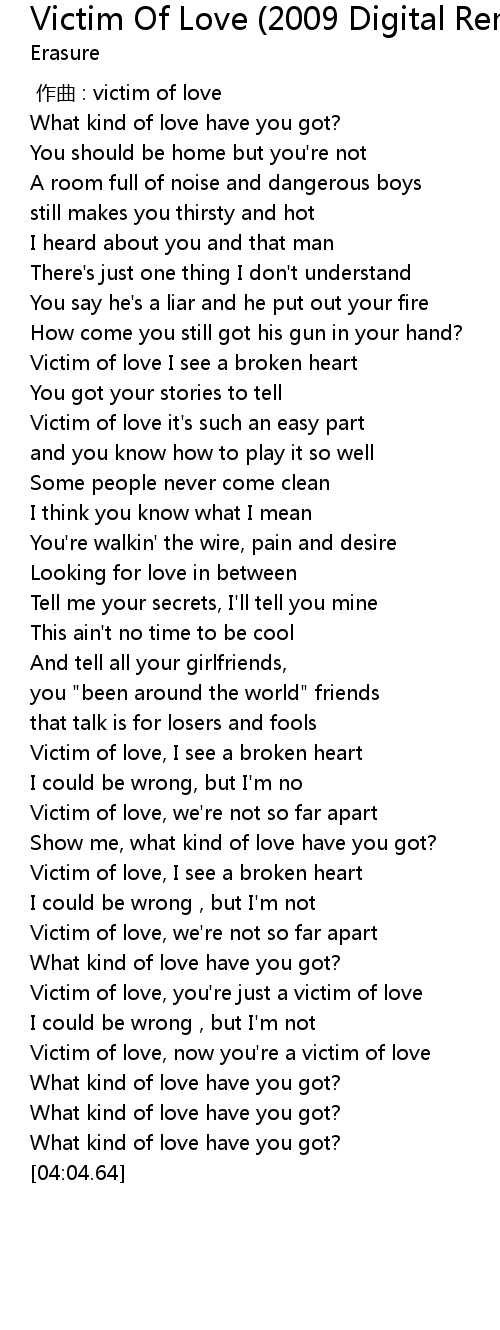 | [03:39.77] | Victim of love, now you're a victim of love |