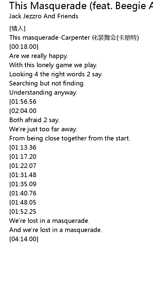 | [00:05.00] | This masquerade-Carpenter 化装舞会(卡朋特) |