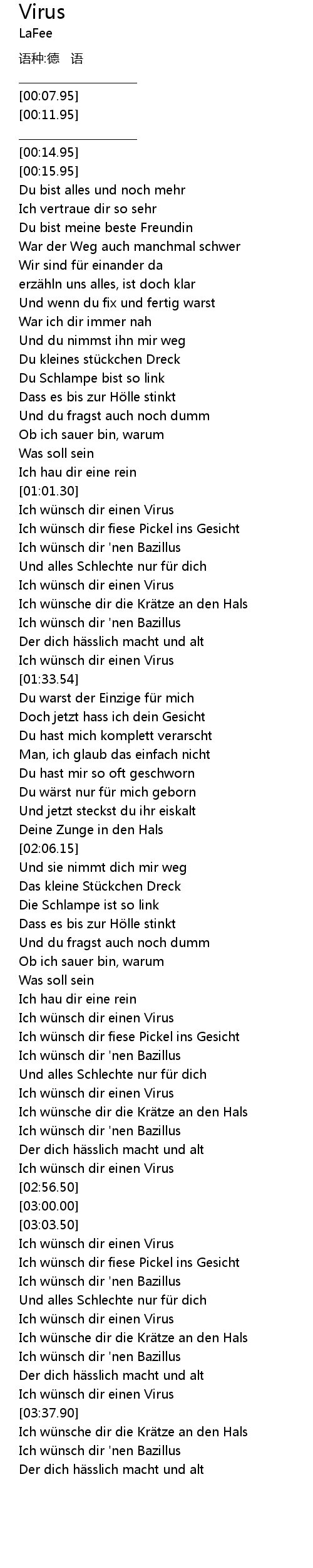 | [03:36.83] | Ich wü nsch dir einen Virus |