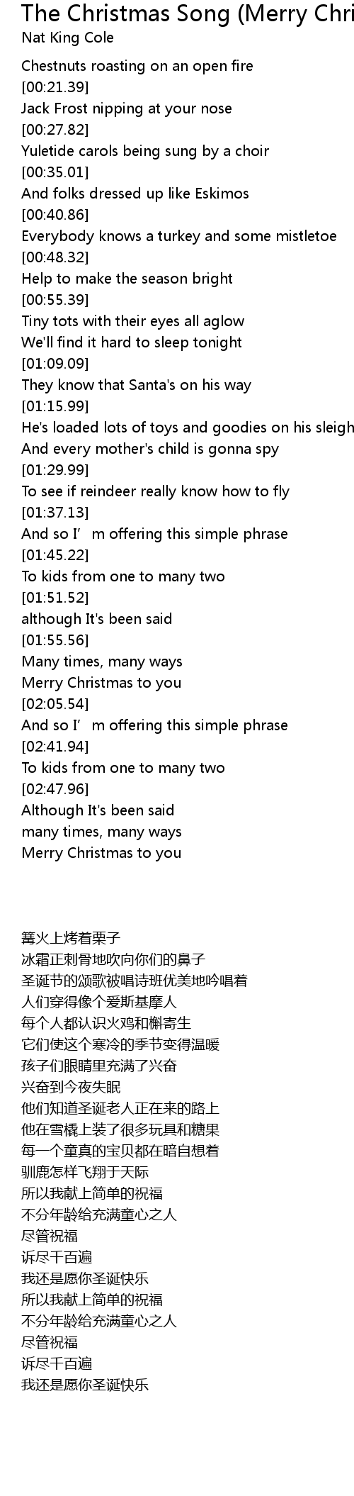 | [00:14.84] | Chestnuts roasting on an open fire |