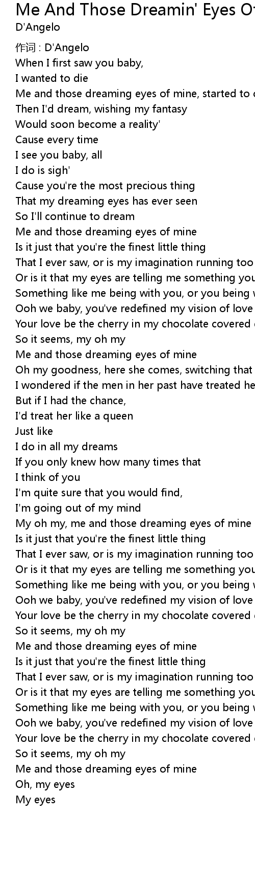 | My oh my, me and those dreaming eyes of mine | |