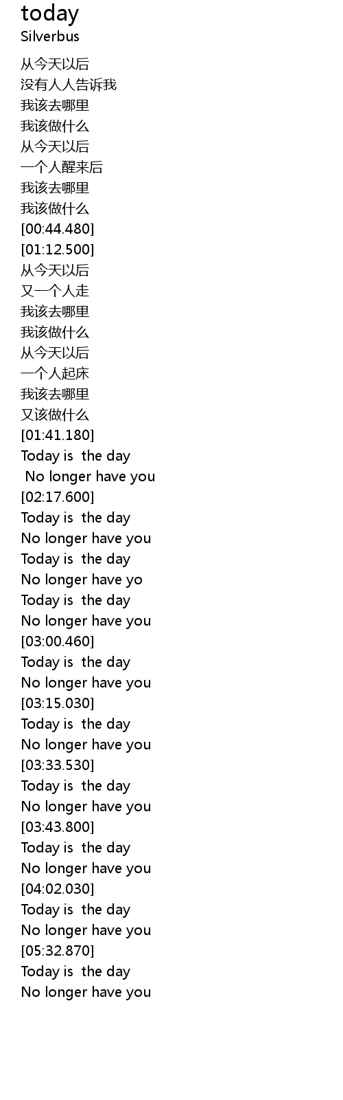 | [00:15.190] | cóng jīn tiān yǐ hòu |
