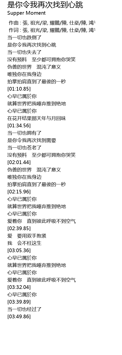 | [00:36.30] | shì nǐ lìng wǒ zài cì zhǎo dào xīn tiào |
