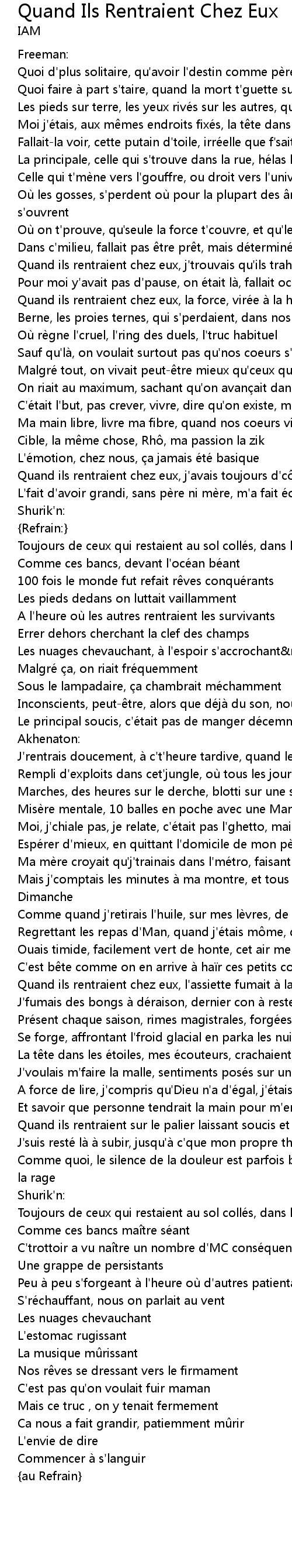 | L'fait d'avoir grandi, sans père ni mère, m'a fait écouler trop d'grammes | |
