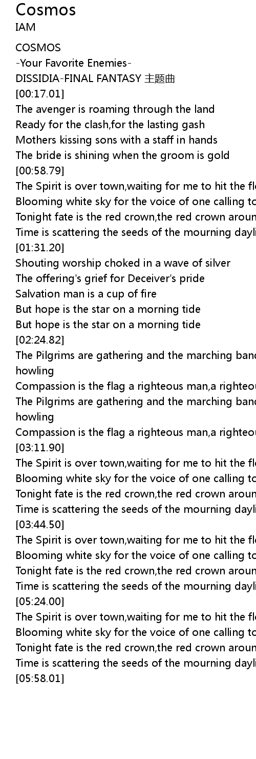| [00:13.02] | DISSIDIAFINAL FANTASY zhǔ tí qū |