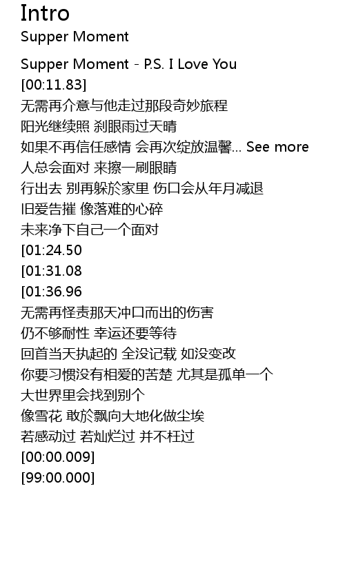 | [00:00.17] | Supper Moment - P.S. I Love You |