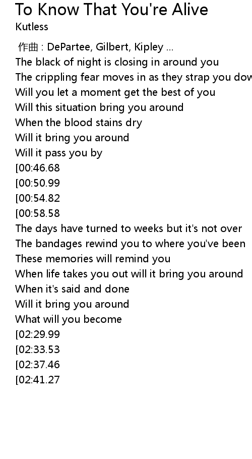 | [02:02.48][00:58.58] | You need to feel just to know that You' re alive |